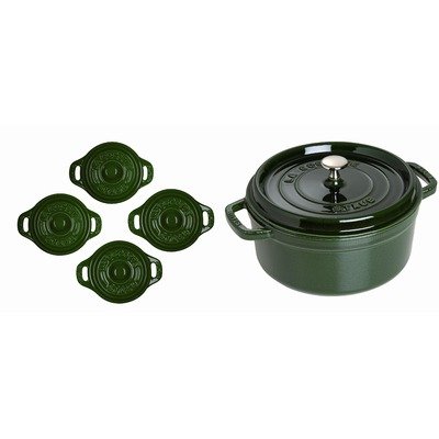 Round 4 qt. Cocotte with Four Mini Ceramic Cocottes in Basil Review