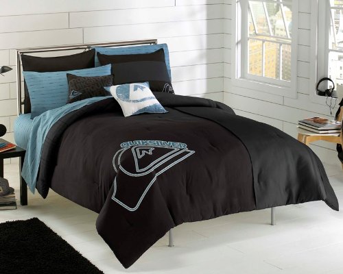 - Quicksilver bedding duvet set features black and charcoal colorblock print highlighted by the Quiksilver logo