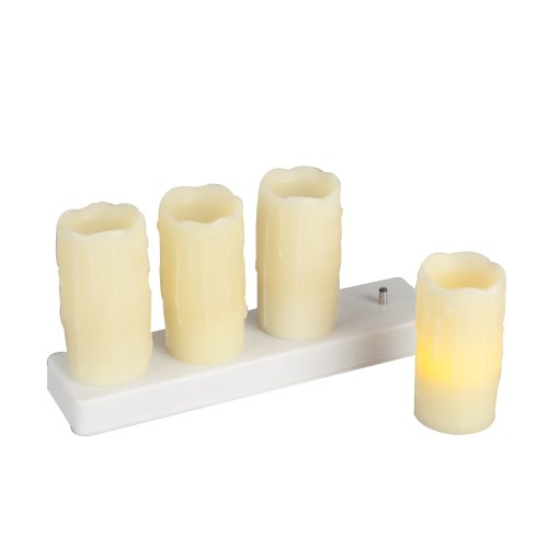 Gerson Everlasting Glow 4 Piece Plastic Set Flameless LED Tea light with Rechargeable Base Ivory Color Feature