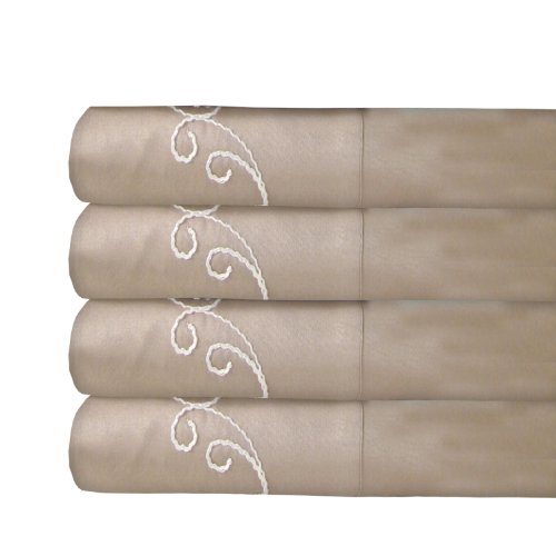 Veratex Supreme Sateen 500 Thread Count Scroll Sheet Set, Cal King, Taupe Review
