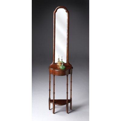 6003024B Features: -Console table with mirror.-Choice cherry veneers.-Cherry veneer top, aprons and lower shelf. Construction: -Solid wood construction. Color/Finish: -Plantation Cherry finish. Dimensions: -Mirror dimensions: 41.25'' H x 16 ''W x 1 ''D.-Overall dimensions: 30.75'' H x 17.75'' W x 9'' D.