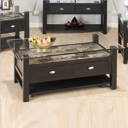 Jofran Marble Techmetric Glass Top Coffee Table in Basic Black Review