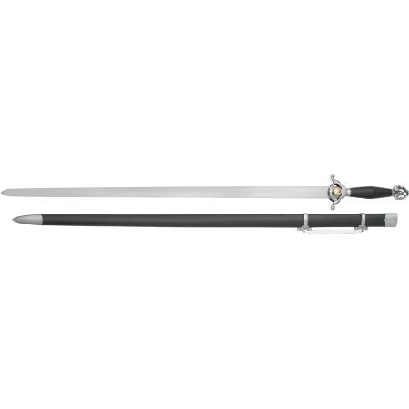 Paul Chen - Tai Chi Sword with Black Composite Handles. Model: PC2008C. 39" overall. 31" unsharpened flexible high carbon steel blade. Black composite handle with nickel silver guard and pommel. Black composite scabbard with nickel silver fittings.