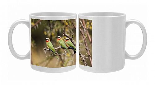 - PHOTO MUG This Photo Mug features an image of White-fronted Bee-eater - three sitting on branch chosen by Ardea Wildlife Pets. Estimated image size 120x80mm.