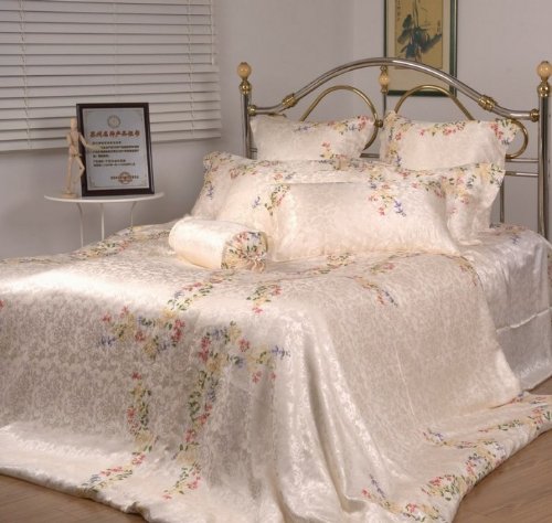 This graceful printed floral pattern sheet set is made of 100% mulberry silk, owns pearl like luster and is soft natural in touch. As a miraculous natural fabric, silk is a ideal fabric for bedding, it is incredibly responsive to body temperature, and it is the most hypoallergenic material you can buy, so you can expect a high quality sleep with our silk beddings.
