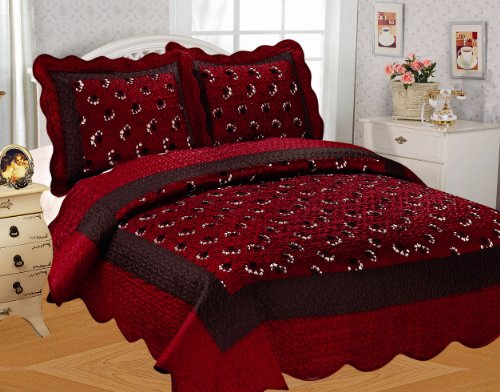 Royal Luxury 3 Piece Taffeta Bedspread Appliqued Embroidery Burgundy King Size Review