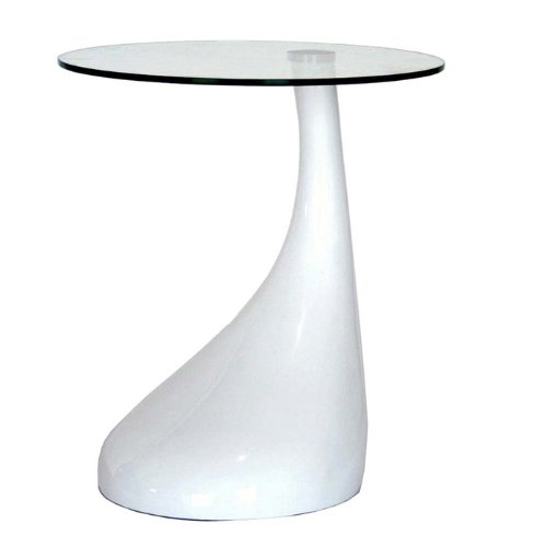 This end table/side table features stylish sophisticated modern contemporary design. Tear drop shape ABS plastic base makes it a unique accent able. Clear Glass top. Some Assembly required.