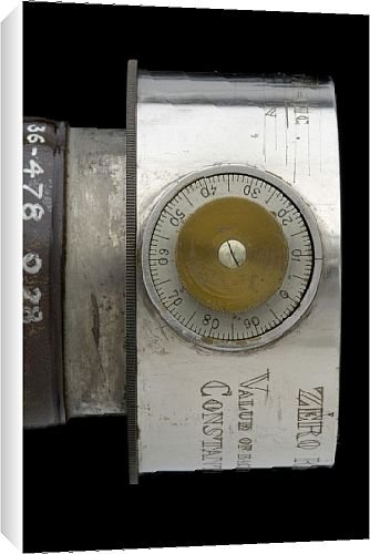 18 x12 Canvas Print, White Sides. showing Rangefinder- inscription. This is one of the few American-made telescopes in the Museum s collection. It has a silvered brass barrel covered in leather and three draw tubes. The eyepiece has an unusual mechanism allowing four lenses, three of which are coloured, to be changed via a small thumbwheel. The objective end of the telescope is fitted with a range-finding device, including a scale bar across